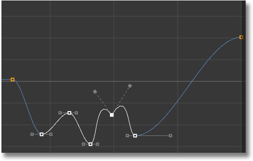 In this example, the Blend Value is at 1.0, and the Ease In/Out value is changing from -1.0 to 1.0. A value of 0.0 should be linear between the points. The Key times are still the same as the original, but the values and tangents have changed.